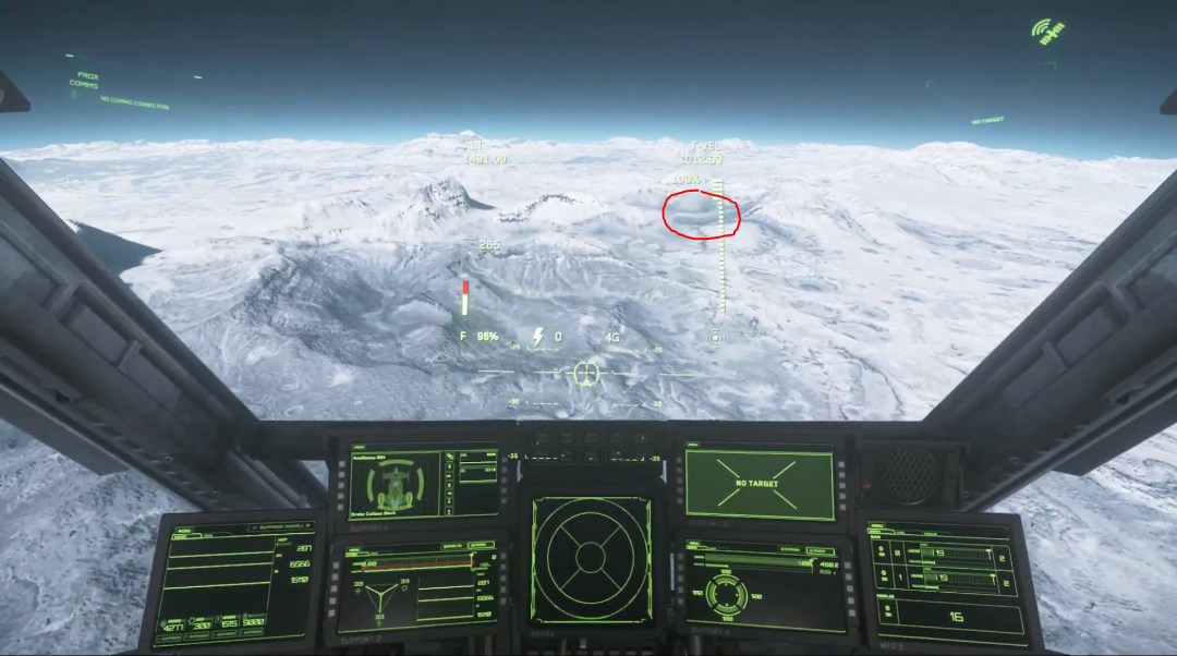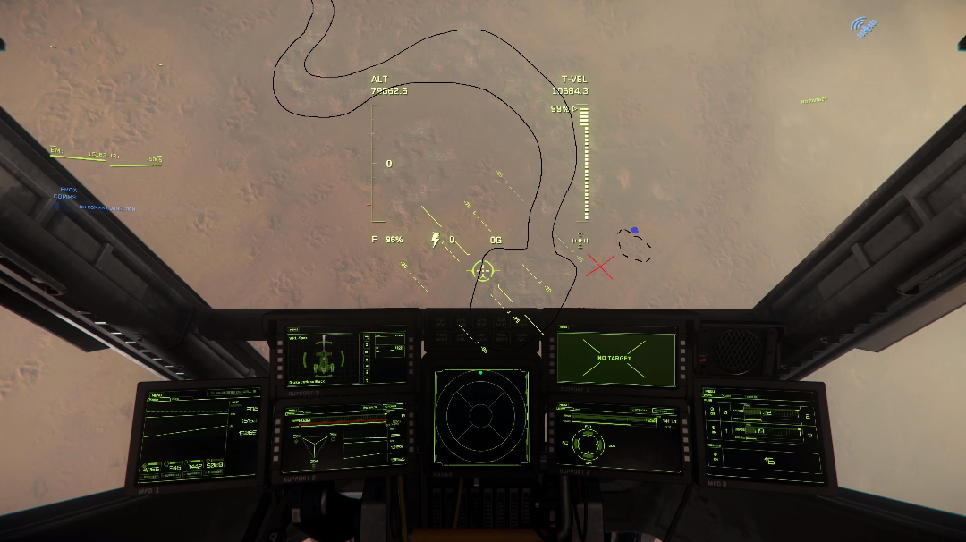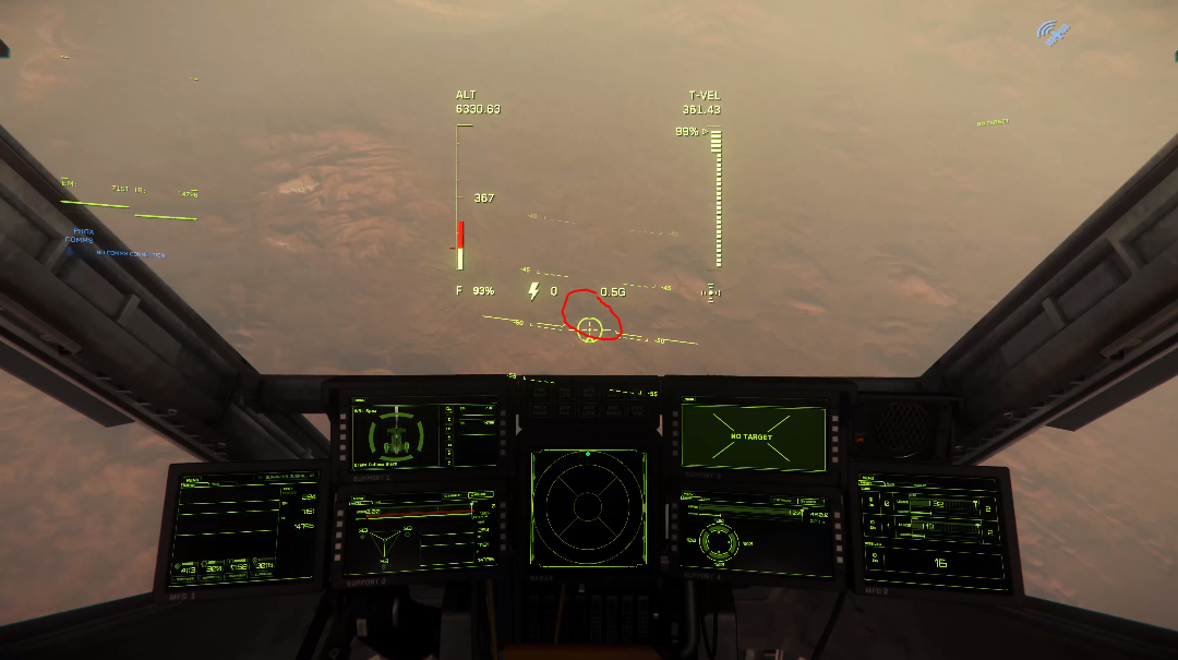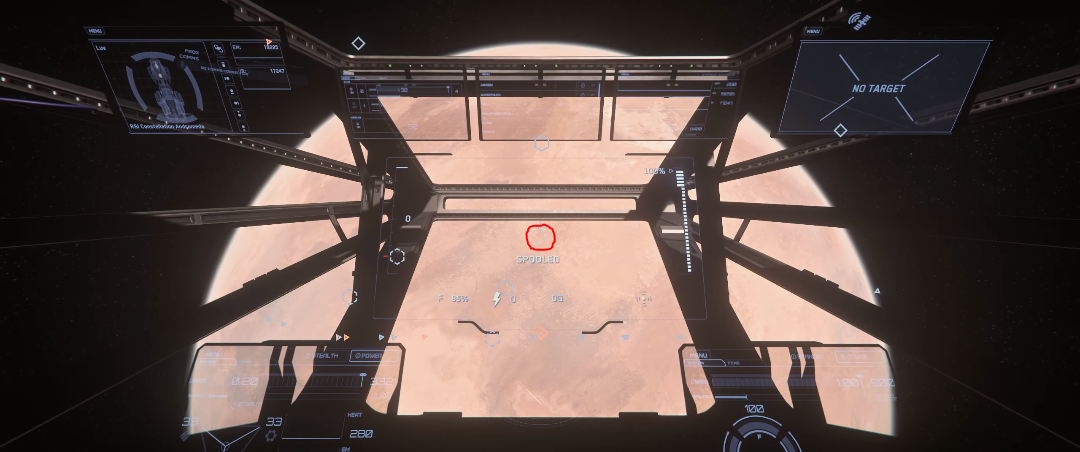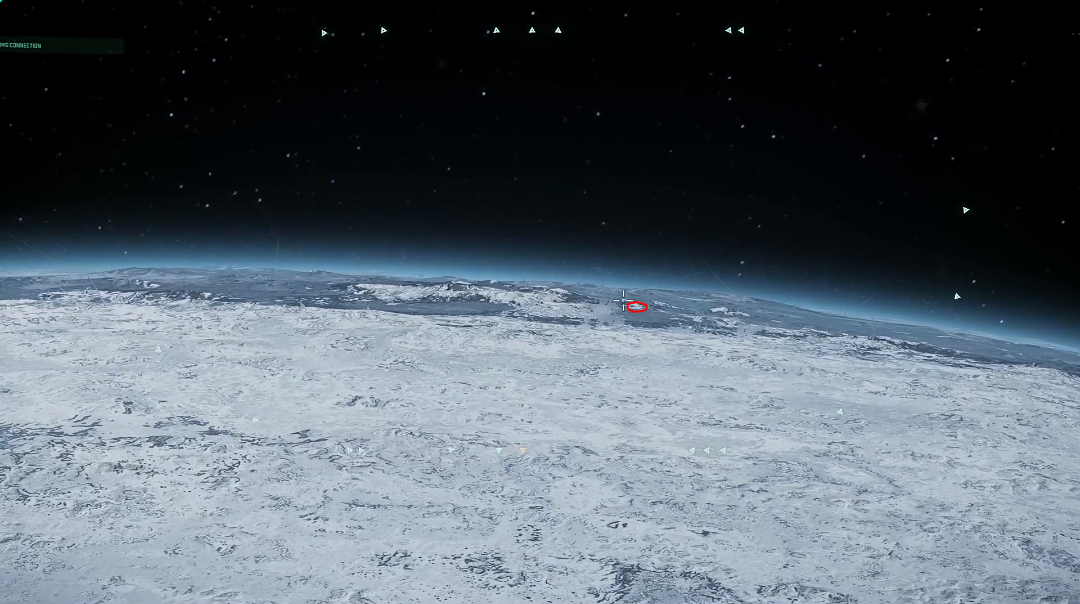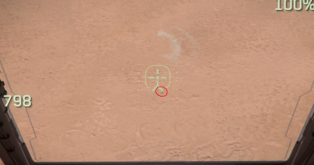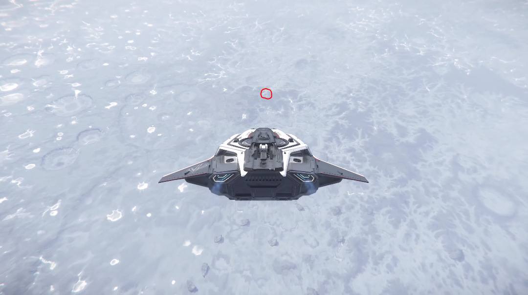 To begin, travel to Daymar and quantum to Wolf Point Aid Shelter. Once you exit quantum, point your ship at 90 degrees and accelerate until you exit Daymar’s atmosphere. Flip your ship around and locate the lighter coloured terrain resembling a “U”. This “U” shape happens to point towards the location, see the image below for clarification.