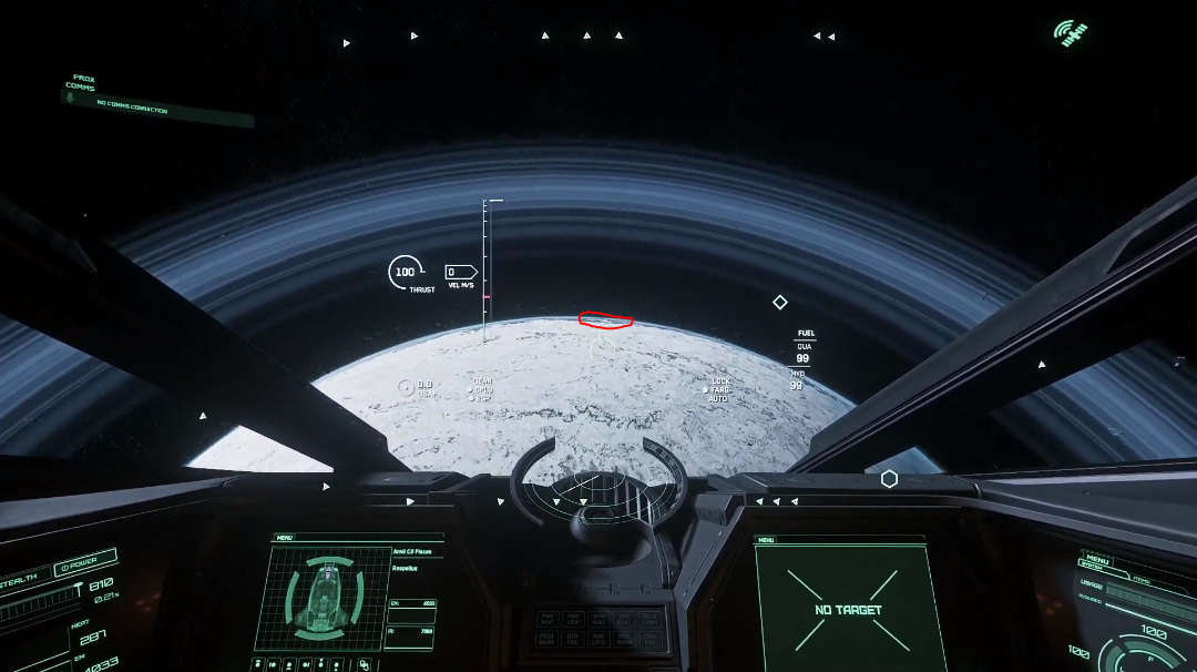 The way to get there without the mission is to head to Daymar then quantum travel to OM-3. Refer to the left-most image below for your heading. Proceed in this direction, when you are closer to the moon. Hold down F, and zoom in to locate a “bright” mountain amongst the terrain. The location is situated in a large crater at the base of said mountain. Please see below for clarification.